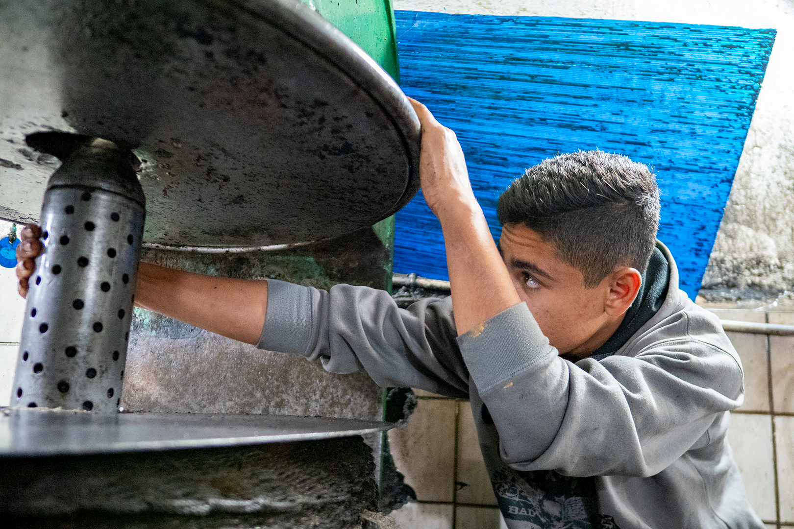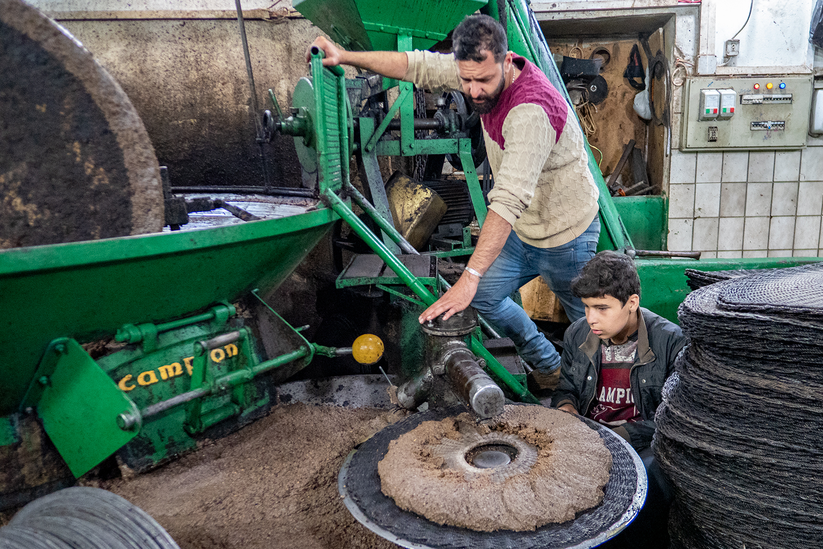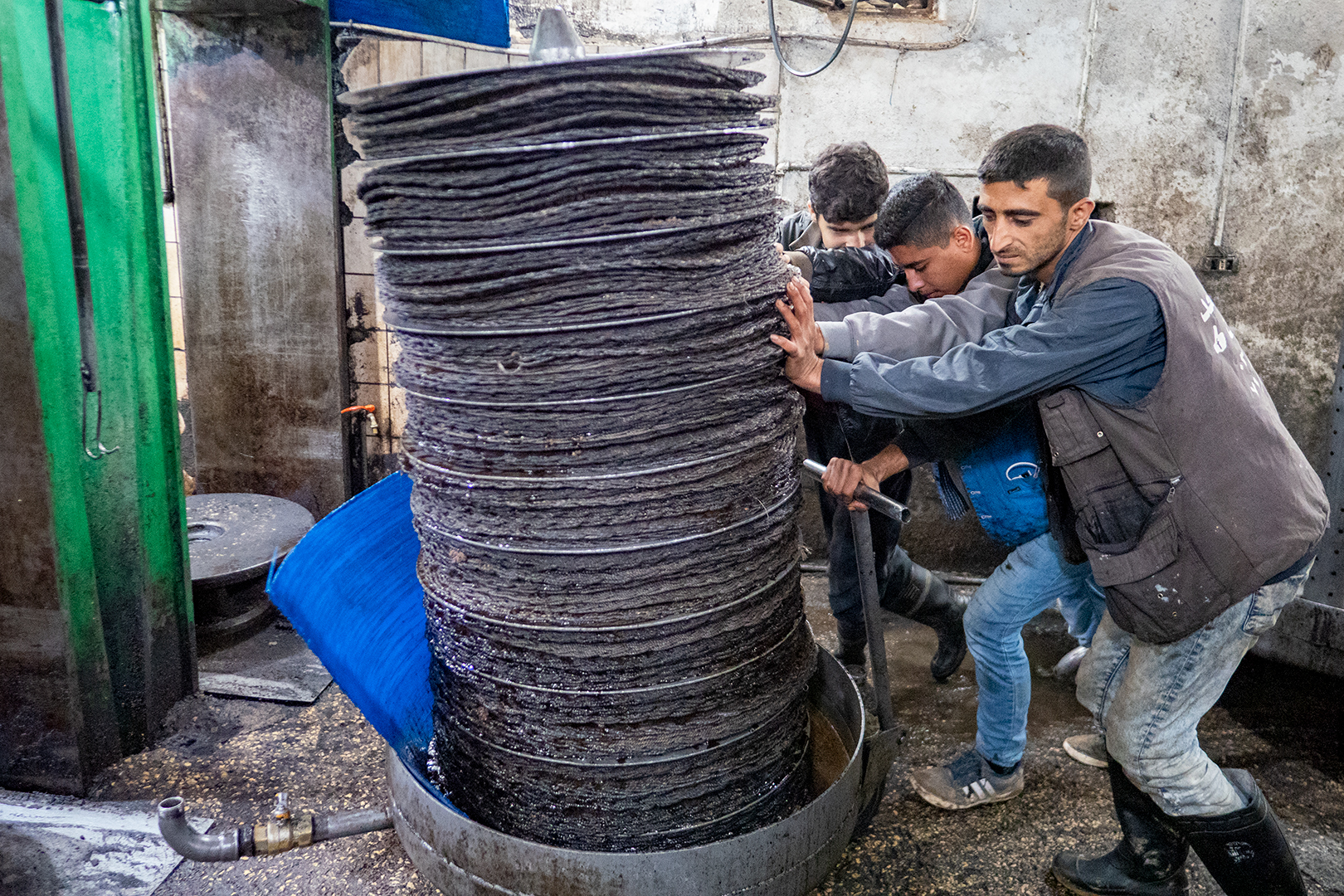 Cestou na stanicu sme sa zatavili u jeho kamaráta Hseina Mustafu pozrieť, ako sa vyrába naozaj tradičný panenský olivový olej. Keďže doobeda sme boli vo výrobni tradičného libanonského mydla (o tom inokedy), rozšírili sme si opäť teoretické znalosti z ďalšieho remesla a naša cena na trhu práce stúpa ako rakety Elona Muska 😉