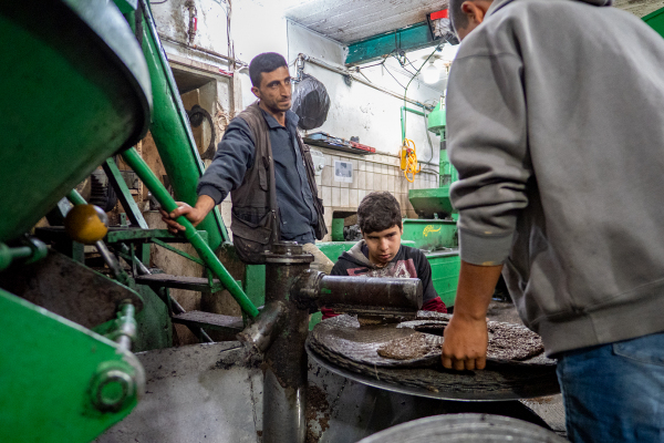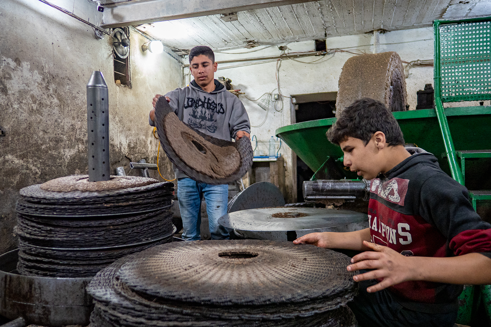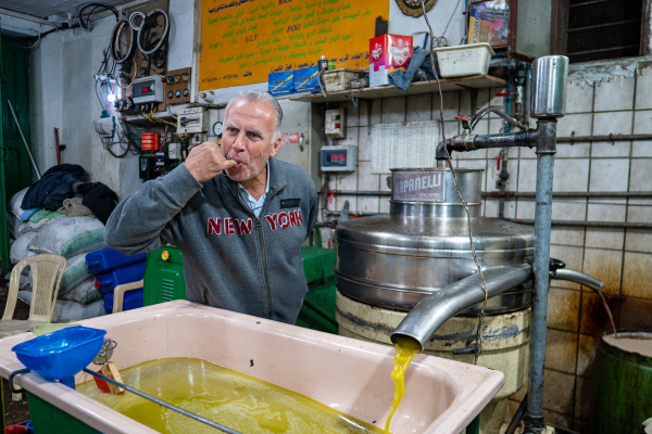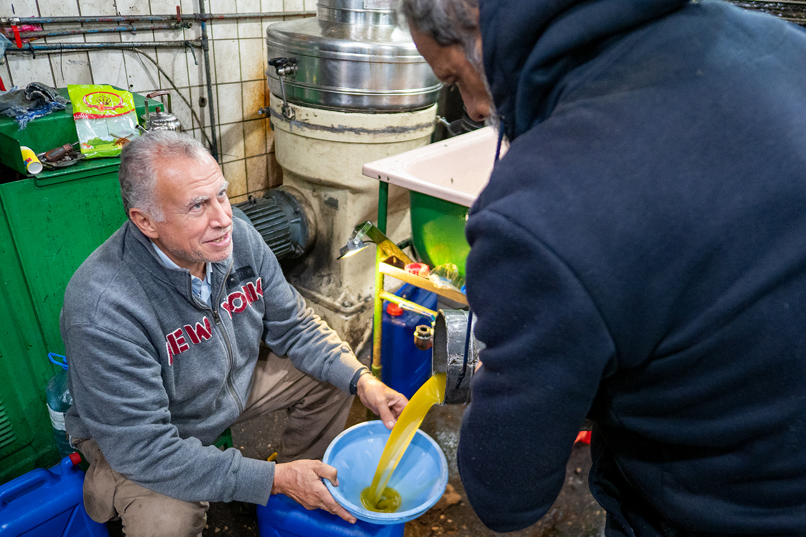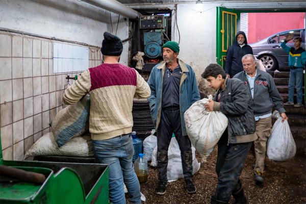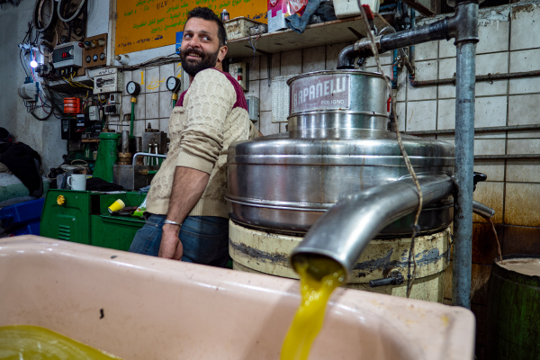 Cestou na stanicu sme sa zatavili u jeho kamaráta Hseina Mustafu pozrieť, ako sa vyrába naozaj tradičný panenský olivový olej. Keďže doobeda sme boli vo výrobni tradičného libanonského mydla (o tom inokedy), rozšírili sme si opäť teoretické znalosti z ďalšieho remesla a naša cena na trhu práce stúpa ako rakety Elona Muska 😉