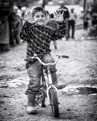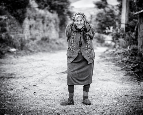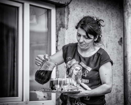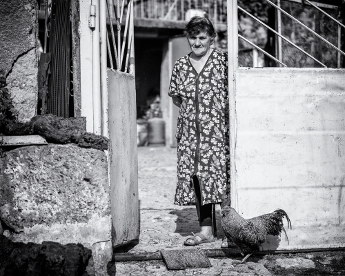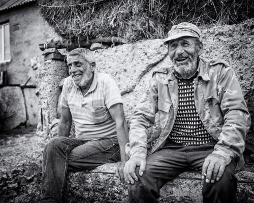 Na opačnej strane ulice sedia dvaja ujkovia a usmievajú sa ako o život. Vyzerá to byť na veselú dedinu. Kým ich fotím, volajú na kohosi v dome, vybieha dievčina s posúchom a strká mi ho do ruky namiesto šálky. Vyzerá to tak že dnes mi je súdené fotiť jednou rukou …