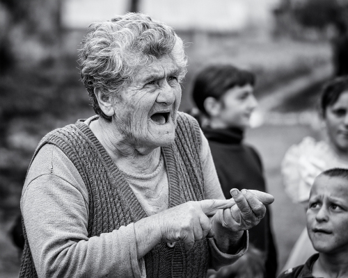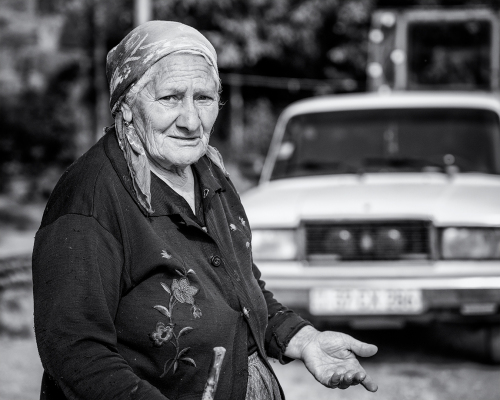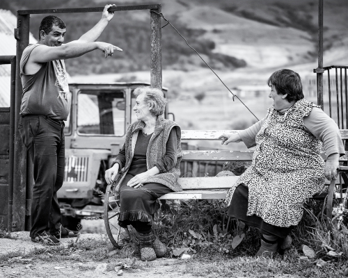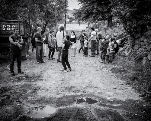 Ruch na ulici priťahuje ďalších susedov a o chvíľu je tam malý míting. „Našu rozbitú cestu nafoť a pošli do Jerevanu, nech vidia ako žijeme!“ dáva inštrukcie aktívna starenka. „Nedostávam peniaze na dieťa!“ sťažuje sa mamička s kojencom v náručí. Do toho stále otravnejšie deti. Niekto ma ťahá za rukáv a ukazuje čo mám nafotiť. Atmosféra začína hustnúť. Nie, necítim vo vzduchu ani náznak nebezpečenstva alebo hrozbu násilia. Cítim len bezradnosť a zúfalosť.