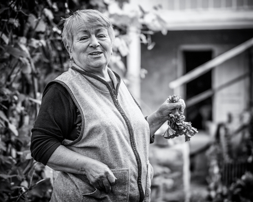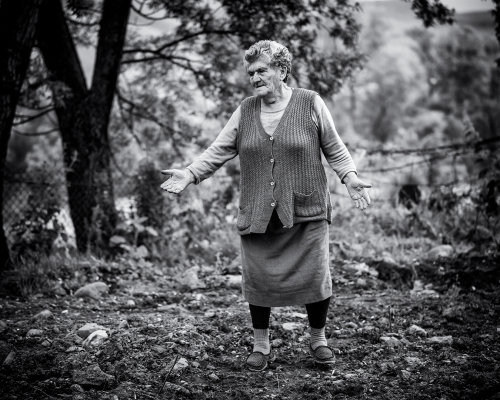 Po chvíli prichádza babička. Volá sa Soňa a našťastie úsmev jej nezmizol z tváre. Len kožená sedačka k nej nejak nepasuje. Pochválim zariadenie a snažím sa babičku vymanévrovať na zadnú terasu, kde je krásny výhľad. Po ceste mi vnučka strčí do jednej ruky čaj a do druhej pohár s ovocnou šťavou. Nuž, teraz buď múdry a taktný pán fotograf. Šupnem do seba šťavu – je fakt výborná a zbavujem sa pohára. S čajom je to horšie – je horúci. A tak s čajom v jednej ruke a s babičkou v druhej zápolím na úzkom balkóne s kompozíciou. Dcéra medzitým usilovne zberá prádlo zo sušiaka, ktoré som chcel použiť v zábere. Nevadí, bojujeme – niečo z toho snáď bude. Na schodoch sa poďakujem za pohostenie a ja sa zbavujem aj šálky.