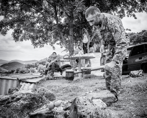 Spravíme ešte pár záberov a stretávame sa s Garikom a Radanou. Informujeme ich čo sme zistili. Oni sa dozvedeli to isté. Tak vyrážame zistiť či sa mýlia domáci alebo my. Šoféruje Garik. Ja si to užívam vzadu. Cesta po ktorej sa trmácame v mape nie je. Po nejakej dobe narazíme na skupinu pastierov. Zastavujeme. Ukazujú nám kde je náš cieľ – hentam za kopcom, asi pol hodinu peši. Ale že našim autom to nedáme!