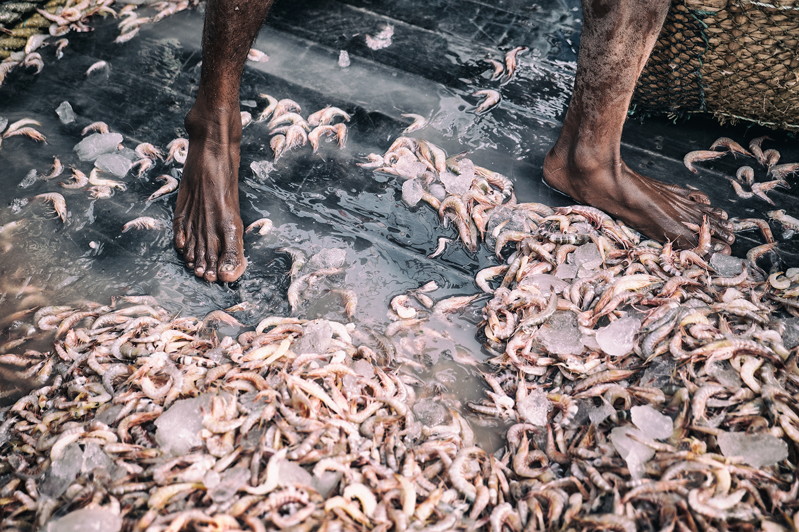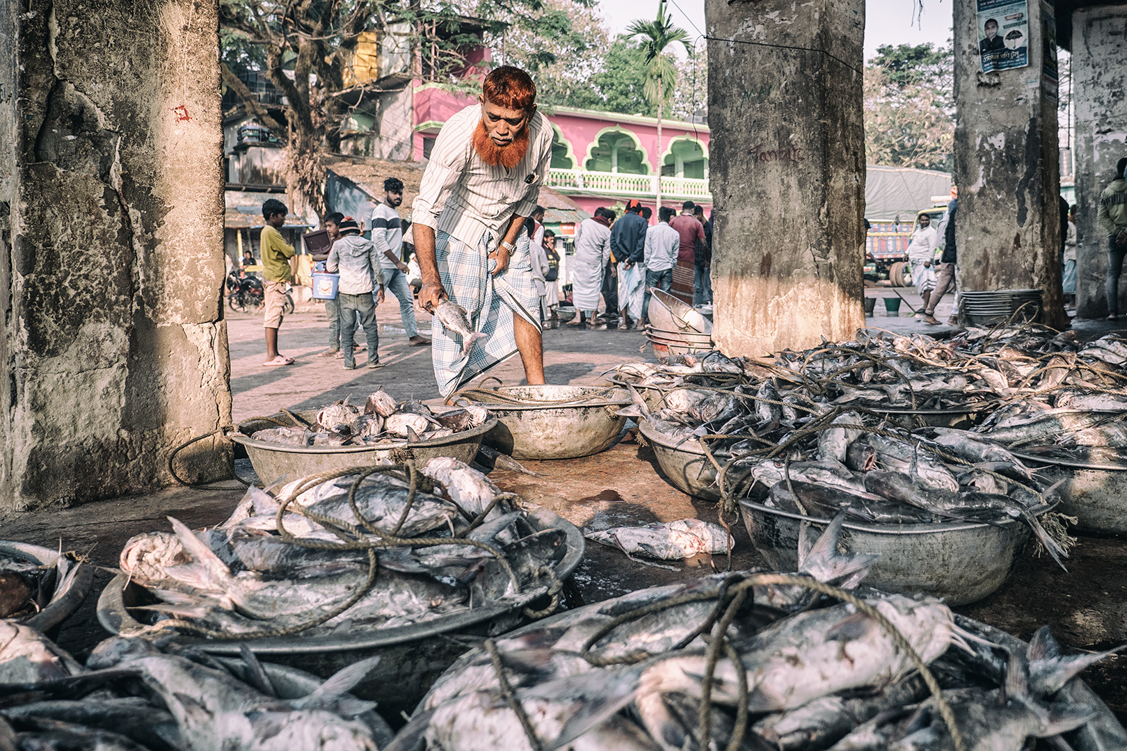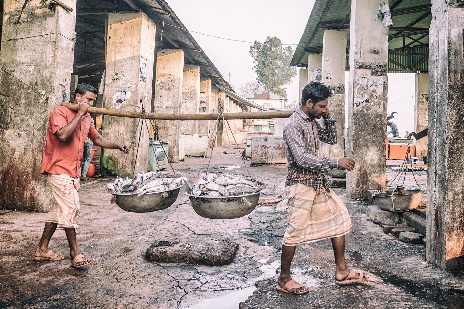 Zavčasu zrána kotvia na rybom trhu rybárske lode všetkých rozmerov. Priviazané jedna o druhú vydávajú svoj náklad. Nosiči kmitajú v hektickom tempe z lodí na triediace plošiny. Odtiaľ na váhy a ďalej k obchodníkom. Všetko sa musí stihnúť veľmi rýchlo. V lodiach sú lode uložené na ľade a je potrebné ich dodať odberateľom skôr, ako sa do nich oprie doobedňajšie slnko, ktoré sa aj teraz v zime postará o teploty 20-20 stupňov.
