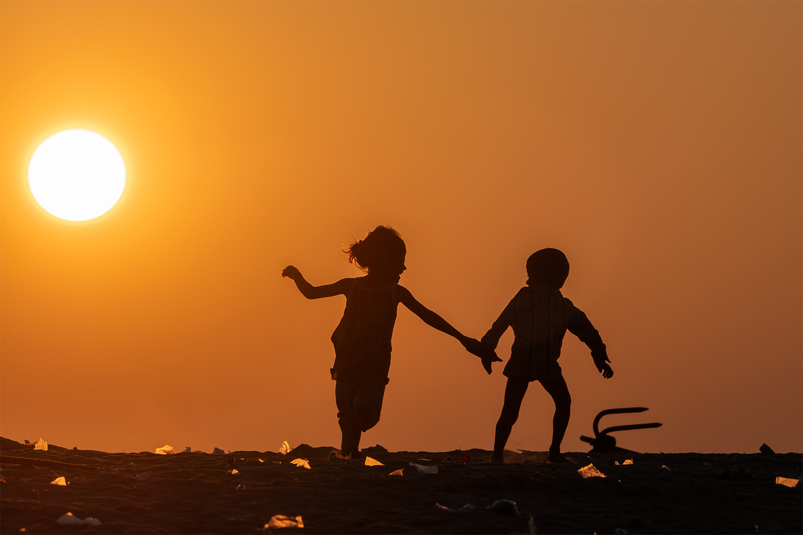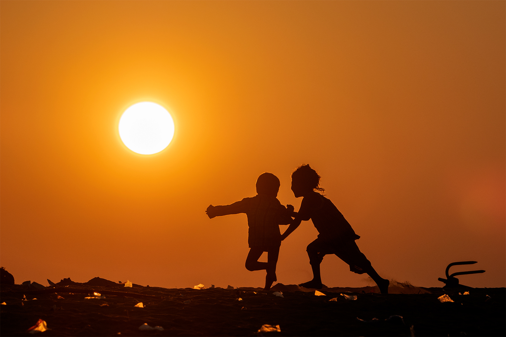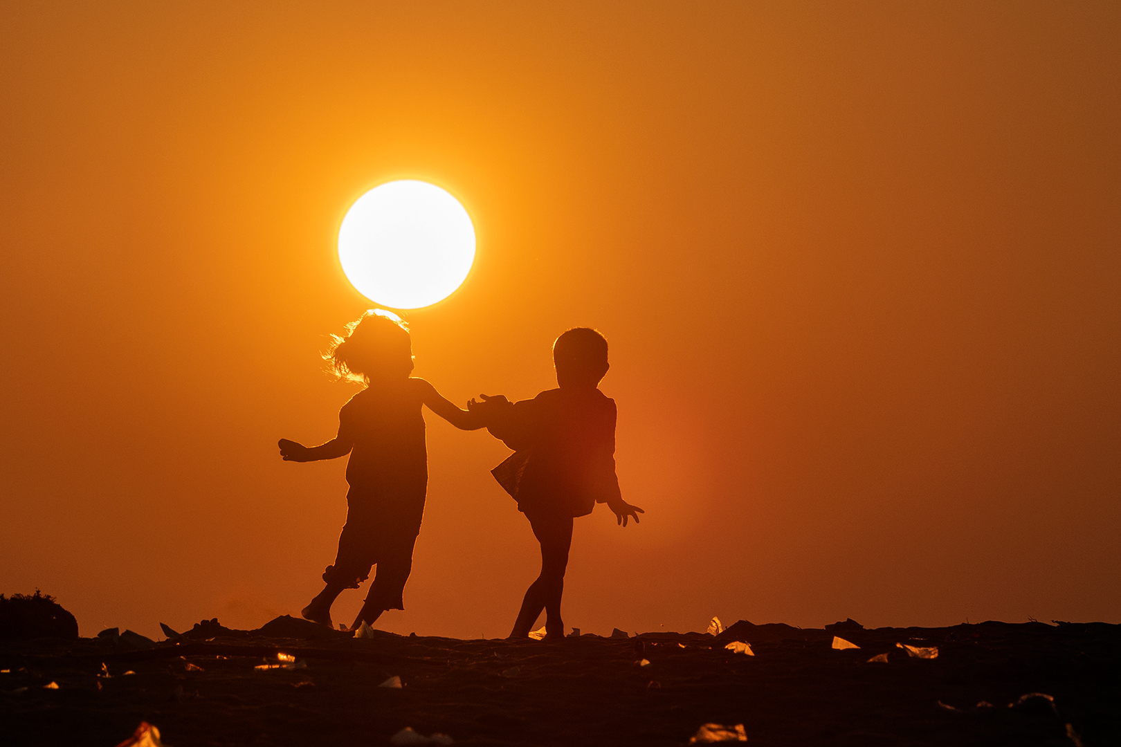 Tak nech to nie je stále len také smutno-veselé. Týchto dvoch krpcov sa mi podarilo nafotiť ako si úplne neviazanie blbli na pláži pri západe slnka. Našťastie sú to všetko siluety. Keď som totiž ku nim prišiel bližšie, zistil som že chlapček dnes vyrazil do spoločnosti „na ostro“ – dole bez 😉