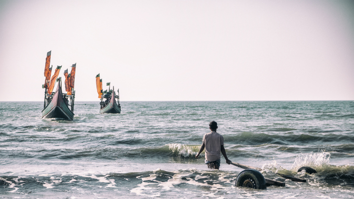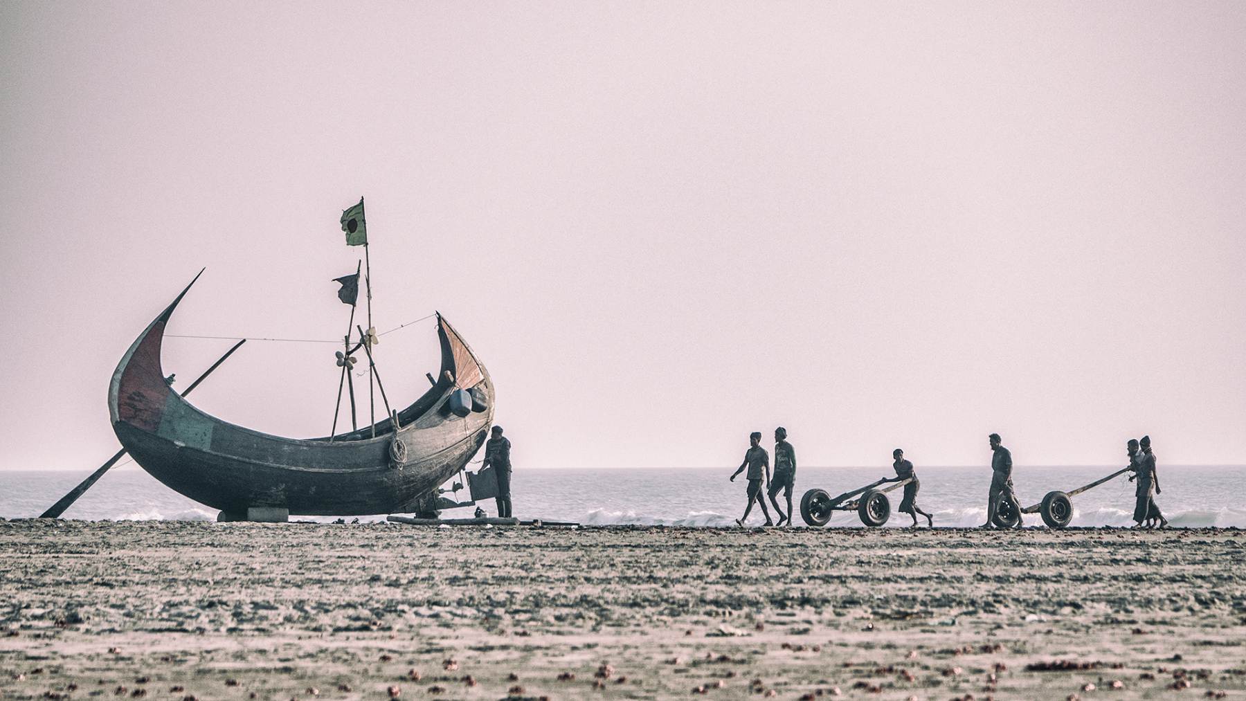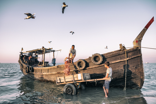 Dnes sa ku nám pridala skupinka profesionálnych fotografov z JúEsEj. Okrem toho, že sa sťažujú na miestnu stravu, ubytovanie, počasie a teplotu kokakoly, majú skvele vypracovanú taktiku ako sa profesionálne natlačiť do záberu. Na pláži bolo dnes rybárskych lodí pomenej. A tie pri ktorých sme boli, okupovali profíci. Tak som naštartoval bzuča a zaletel som si k lodiam pri vedľajšej dedine.