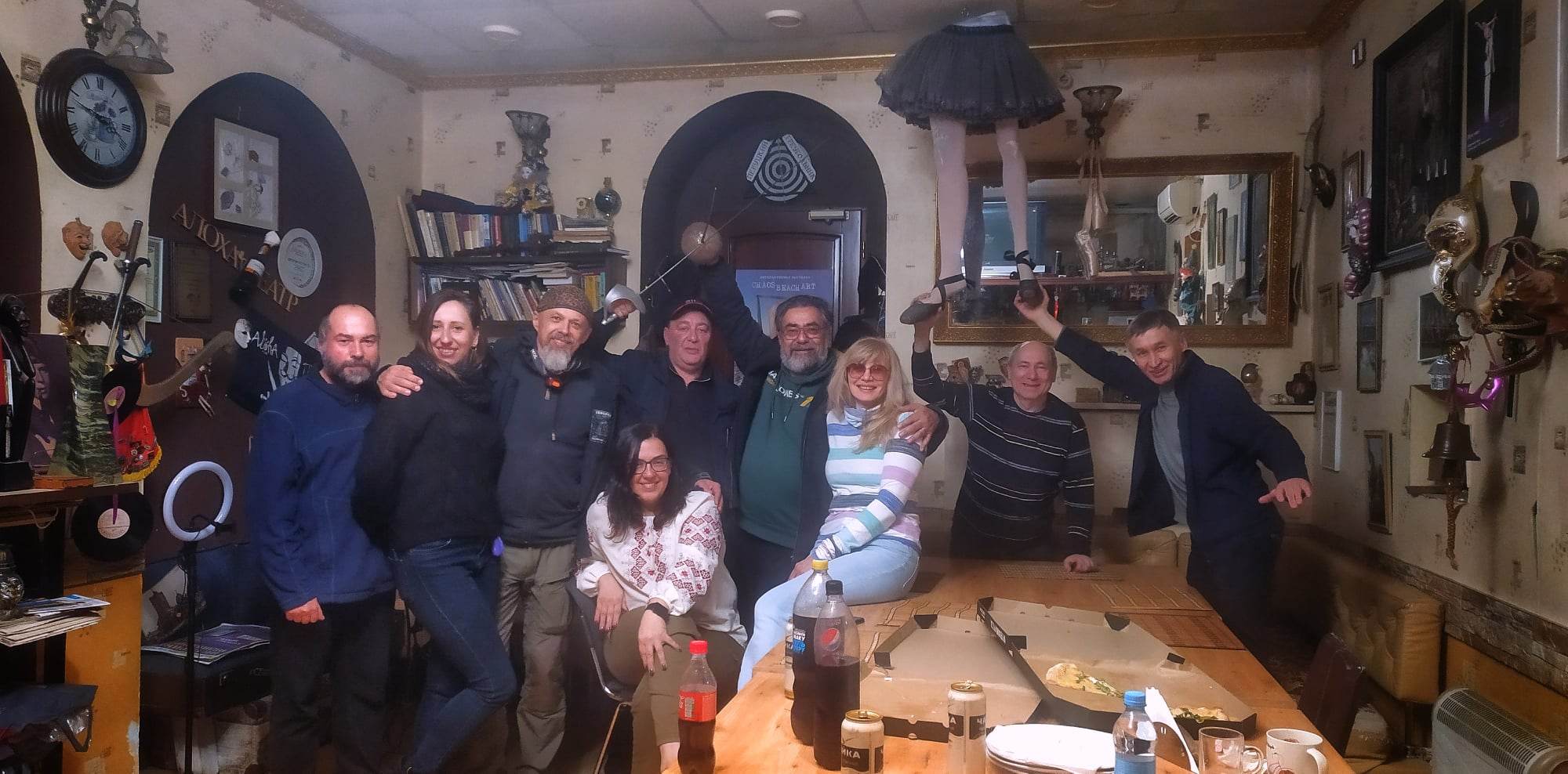 Sme po celodennej ceste unavení a hladní, objednávame si preto pizzu so sebou. Zrazu sa ozvú sirény. My sa strhneme, domáci sa tvária ako keby nič. „Nemusíme ísť do pivníc?“ pýta sa Garik. Iryna vyťahuje mobil a kontroluje situáciu. „To sú šachedy z Krasnodaru. Letia našim smerom, budú tu o 25 minút,“ oznamuje ako keby sme sa bavili o príchode vlaku so starou mamou. Usádzame sa v bare divadla, kde budeme dnes nocovať. Kŕmime sa pizzou, bavíme sa o programe na zajtra. Prichádzajú ďalší kamaráti fotografi. Zabúdame kontrolovať čas. Zrazu sa ozve výbuch. Zarinčia sklá. My sa opäť strhávame, domáci jedia pizzu. Ďalší výbuch. Bližšie. „To je OK, dali ich dole,“ ukľudňuje nás Sergej s plnými ústami. Keby leteli priamo na nás, znelo by to ako moped. „Takto,“ upresňuje Iryna a púšťa nám zvuk z mobilu.