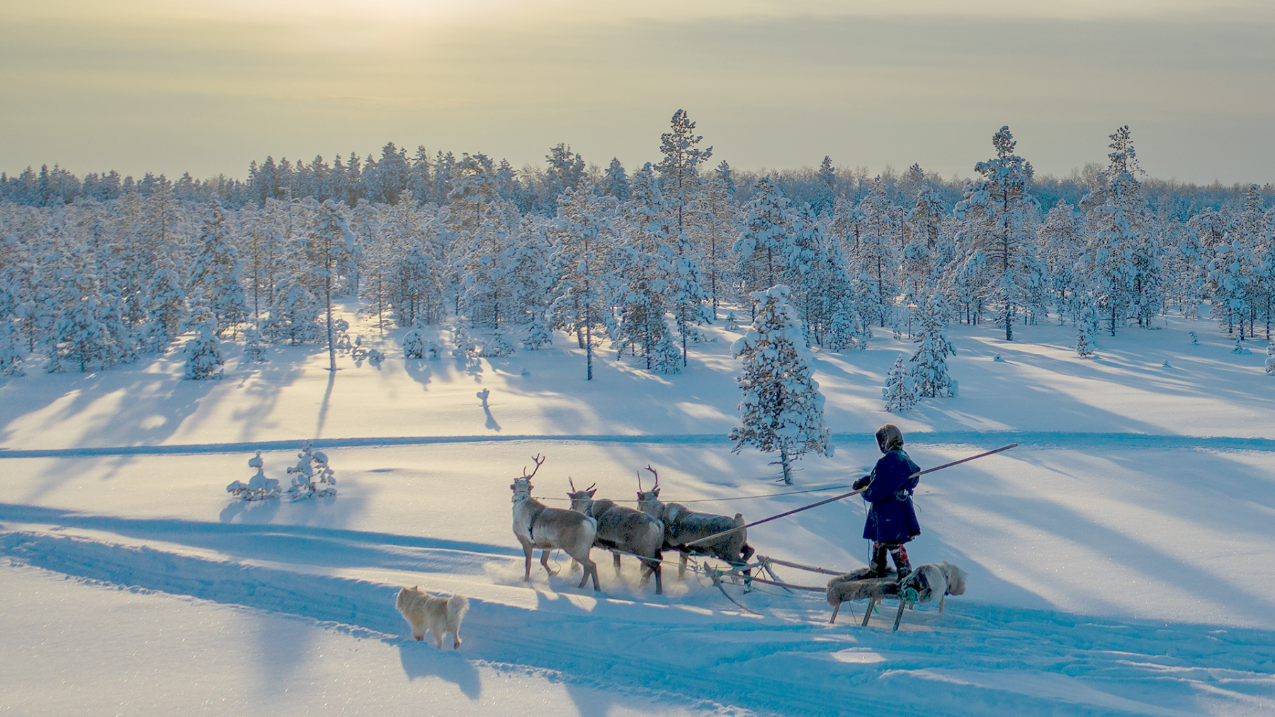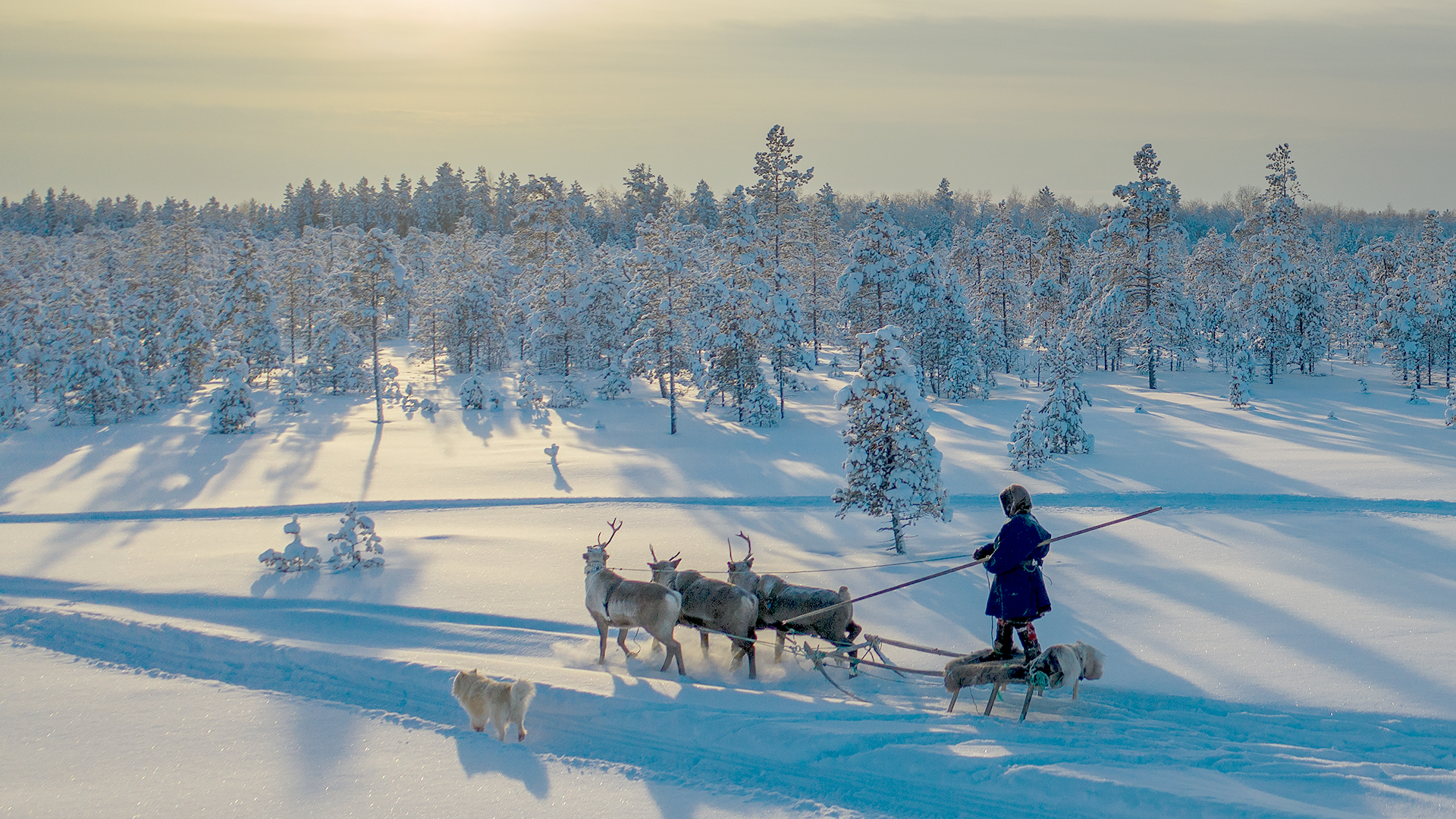 Nenci neváhali a za sobami vyrazili stopári aby ich prihnali späť na čistinu. My sme vyčkávali. A dostali sme nápad. Naštartovali sme drony a vyrazili sme vzduchom po stopách stáda. Za chvíľu sme predbehli stopárov na saniach a boli sme nad stádom. Toto sa hneď zapáčilo našim priateľom. Lepšie ako sa za nimi naháňať celé hodiny po zasnežených pláňach. Uznali že drony sú „большая техника“ (veľká technika) a hodili by sa im. Ešte vyriešiť nabíjanie batérií a je vymaľované .
