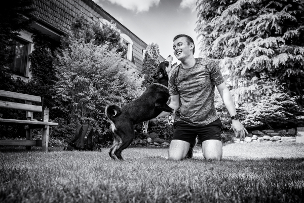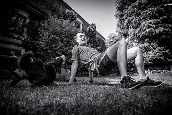 Mladší syn Michal sa ešte na jeseň prihlásil spolu s kamarátmi na Spartana. Súťaž sa samozrejme kvôli korone zrušila, ale usporiadateľ ponúkol účastníkom náhradné riešenie – virtuálnu verziu. V deň konania dostal Michal inštrukcie so zadaním. Séria cvičení so záťažou, beh a druhá séria. Aby mohol v kľude „súťažiť“ vyslali sme ráno Bellu s maminkou Alenkou na prechádzku. Pri druhej sérii cvičení nám už na záhrade asistovala Bella. Každý cvik na zemi pre ňu samozrejme znamenal výzvu na hru. No a keď videla fotoaparát „úkol zněl jasně“ – žiaden záber nesmie byť bezo mňa. A darilo sa jej naozaj na 105%. Jej snaženie samozrejme nevyšlo nazmar a fotografia kde sa votrela do záberu naozaj na poslednú chvíľu bola publikovaná na portáli 1x.com.