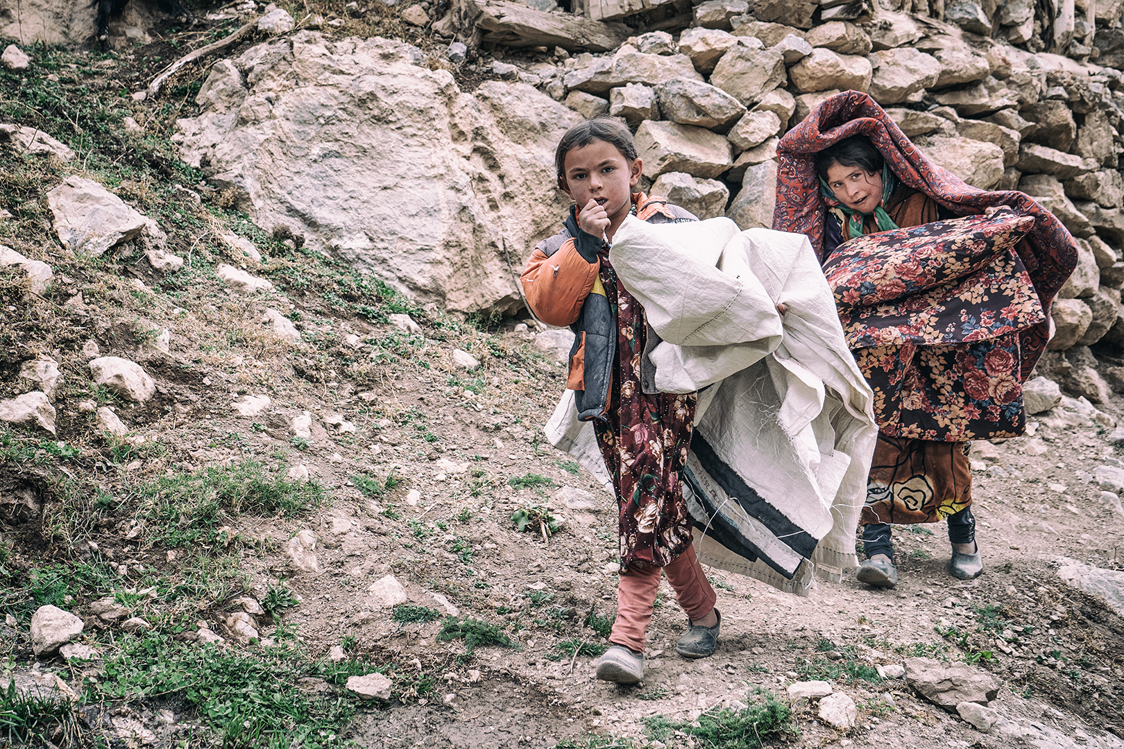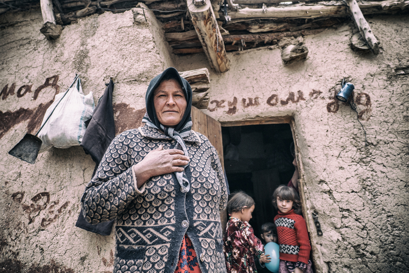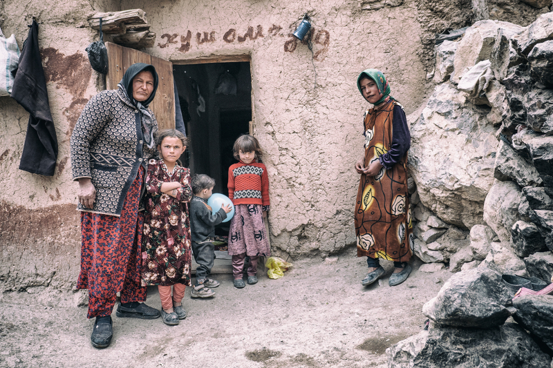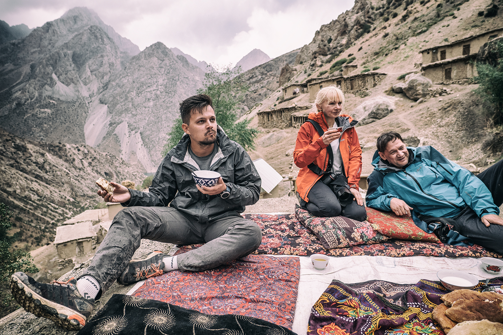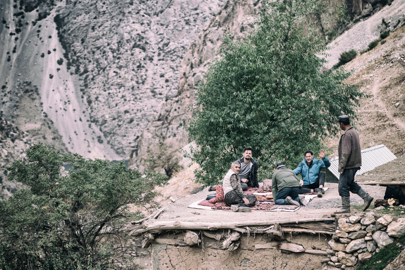 Pred dedinou nás pozorujú dve dievčatá. Držia sa opodiaľ, poskakujúc zo skaly na skalu ako kamzíky, idú súbežne s nami. Na kraji dediny nám vychádza v ústrety mohutný chlap v montérkach a šiltovke. Víta sa s Jumaboyom a zoznamujeme sa. Volá sa Oblokhul a je hlavou jedinej rodiny momentálne žijúcej v tomto bohom zabudnutom konci sveta. Prikyvuje a zároveň vydáva pokyny dievčatám. Prinášajú igelit a na streche budovy pod nami začínajú pripravovať miesto na stolovanie. Bude to nesporne miesto so super výhľadom, ale dom v ktorom bývajú je ešte tucet metrov nad nami. A jeho obyvatelia tiež. Teda až na dcéry čo nosia veci na pohostenie. Obraciam sa na Oblokhula vysvetľujem mu, že sme doniesli nejaké pozornosti pre ženy a radi by sme im ich odovzdali. Súhlasí a spolu s Oldřiškou nás berie hore k domu. Pozýva nás do vnútra a usádza. Vyzerá to nádejne. Vyberáme darčeky – mydlá, čaje, sladkosti pre deti. Matke s najstaršou dcérou žiaria oči, pán domu ochotne prikyvuje. Keď sú darčeky bezpečne schované a časť sladkostí rozdelená medzi drobizg, Oblokhul velí návrat k ostatným. Nesmelo navrhujem, či by sme nemohli vypiť čaj tu so ženami. Pozrie na mňa ako na Marťana a vraví, že čaj pijú muži s mužmi a nie so ženami. Neprotirečím a na postavenie Oldřišky v tejto situácii sa radšej nepýtam. Pri odchode sa nám ešte podarí spraviť niekoľko letmých záberov žien a detí.