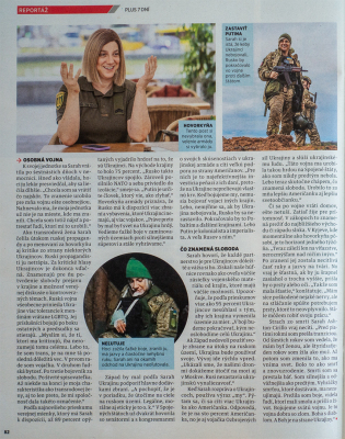 „Myslím, že tí, ktorí ma kritizujú, iba nerozumejú tomu celému. Lebo to, že som trans, je na mne tá posledná dôležitá vec. V prvom rade som vojačka. V druhom ľudská bytosť. Po tretie bojovník za slobodu. Po štvrté spisovateľka. Až niekde ďalej, ďalej vzadu je moja charakteristika ako trans ženy, a aj to len kvôli tomu, že mi spoločnosť dala takéto označenie,“ povedala mi v Kyjeve. Hovorila aj o tom, čo je v zákopoch najťažšie, ako ju v boji zranili a sedem hodín čakala na evakuáciu a prečo je Putin človek, ktorý vie, ako zlyhať.